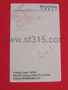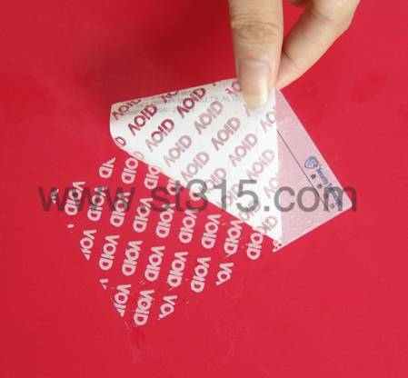 桑泰5P203防偽材料被揭起后,會(huì)有白色的“VOID”(4MM高*13MM寬)字樣轉(zhuǎn)移到承貼物表面,同時(shí)鏤空的“VOID”也會(huì)顯現(xiàn)在標(biāo)簽面材上,不可復(fù)原,以示已開啟。有效地阻嚇盜竊、竄貨等不法行為的肆行。