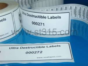 當易碎標簽一旦被揭起,標簽本身將立即破壞而變成錯亂無章的小碎片。破壞的痕跡不可復原,有效地阻嚇了偷竊、未經許可拆卸物品零部件等不法行為,保證了產品的安全性。
